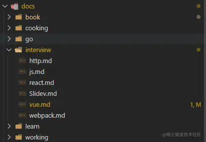 我们做开发,非常喜欢使用markdown来编写技术文档,在根目录下创建文件夹docs。然后随便加入几篇markdown文章。
