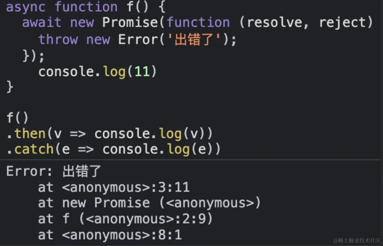 throw new Error('出错了');