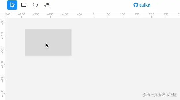 为了解决这类用户微小操作的问题,我们可以巧妙地给拖拽行为加一个 阻塞阈值。具体就是就是按下鼠标后,移动鼠标的距离要大于某个值,我们才认为发生了拖拽,并执行对应工具的逻辑。