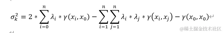 经过统计学相关推导,可以将克里金方差写作: