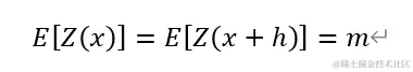 平稳假设(Stationary Assumption)是指,一组观测值的均值是始终固定的,其与观测值所在位置无关;将既定的某个点集由某一研究区域内某处移动至另一处时,随机函数的性质保持不变。即随机函数的分布规律不因位置的改变而改变,具有严格的平稳性。平稳性假设的公式表达为: