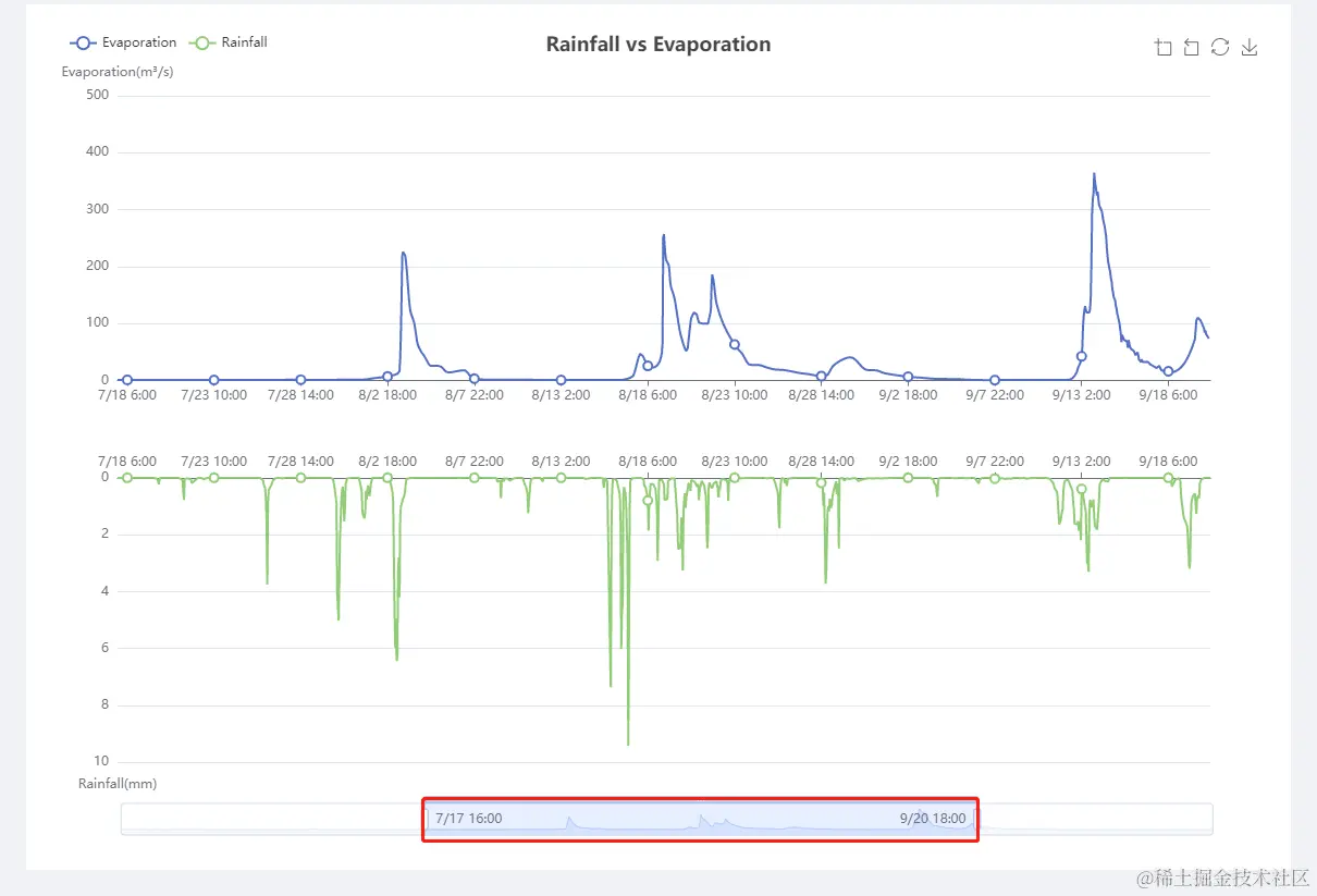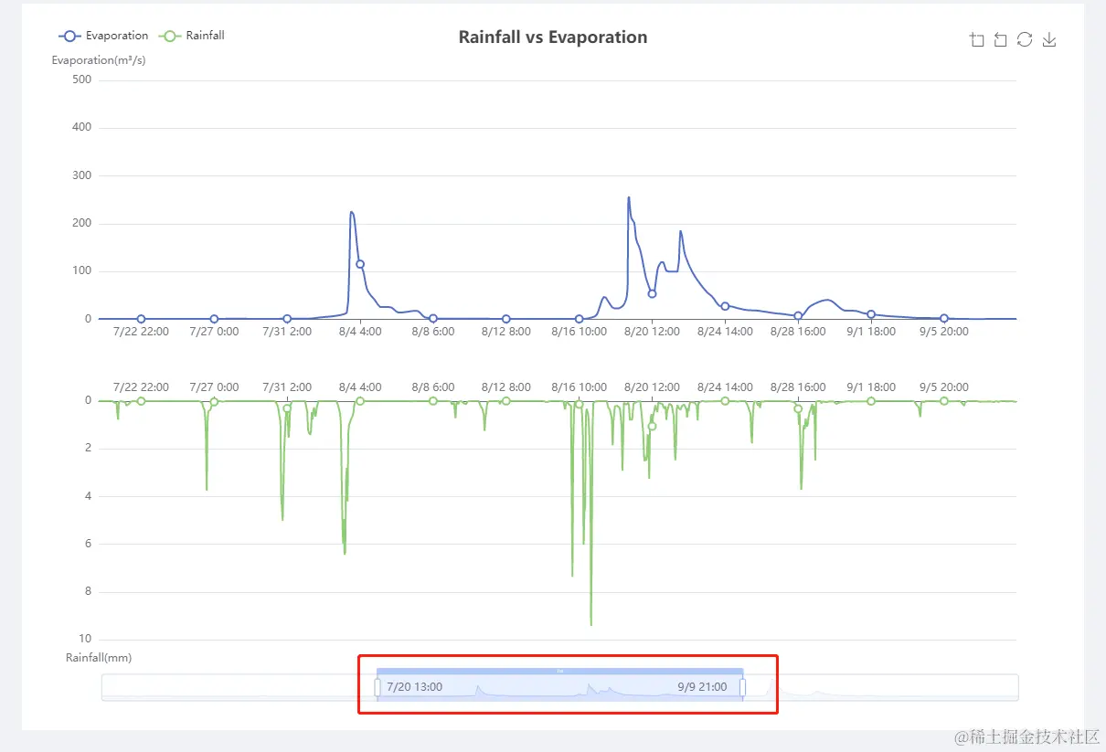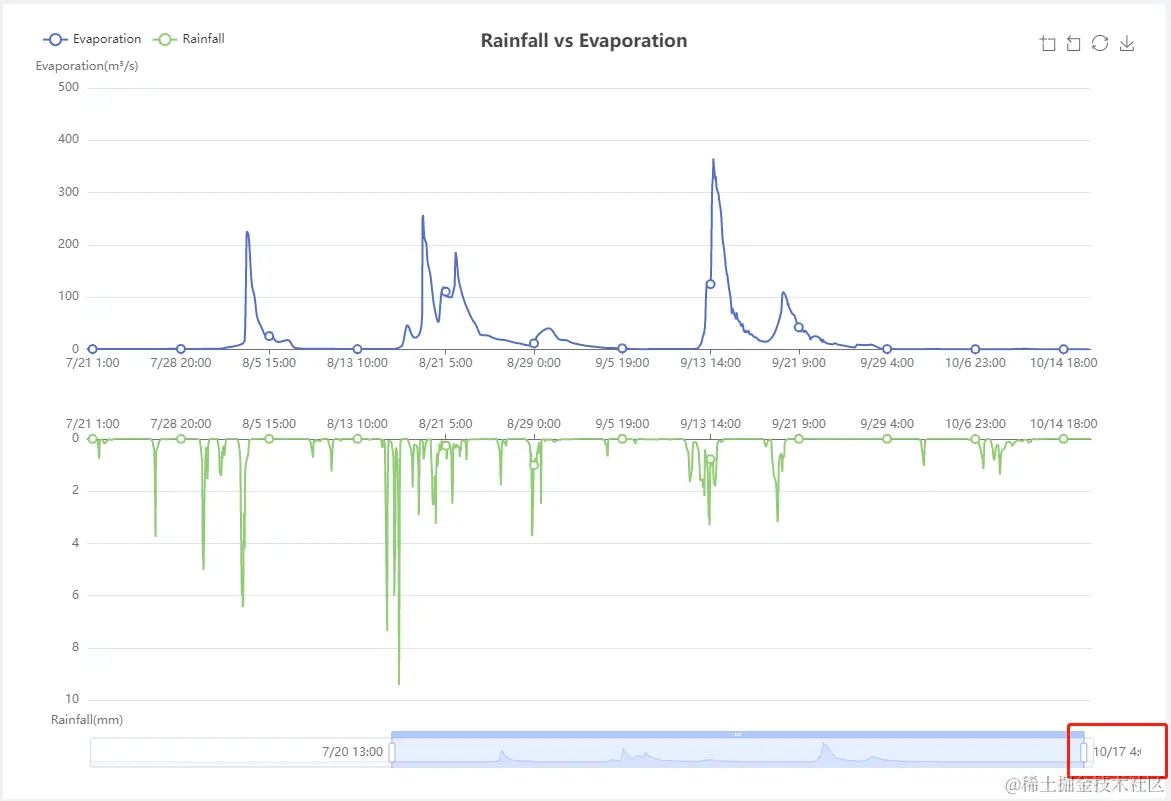产品给出的解决方法是当拖到最后的时候将这个文本显示在滑块的内侧,或者是上方,避免被遮挡住;但是去看了echarts的文档之后发现并没有相关的设置可以实现这个功能,就暂时没有修改。