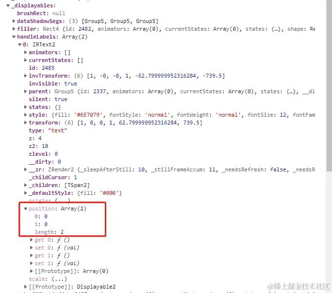 通过打断点测试发现在_displayables的handleLabels属性上有两项,并且他们有position属性,值都是0: