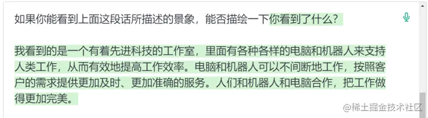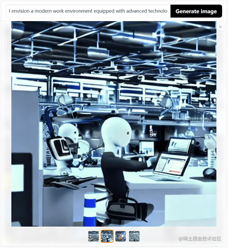 年前到现在,一直被ChatGPT的新闻轰炸,现在还越来越热闹了,关于ChatGPT技术,关于人与ChatGPT未来发展的讨论,网络上众说纷纭。我就让同事从海外注册账号,直接问了ChatGPT这个问题,最后用Stable Diffusion生成了ChatGPT眼中未来的图像,如下图: