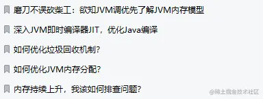 这玩意说起来容易,真要做起来可就难了。现实是大多数人甚至都不到从哪入手,更别说参与公司系统优化,在简历上添上一笔有过性能调优经验了;这也是我很多粉丝比较困惑的点。所以为了帮各位粉丝朋友更快的上手Java性能优化,小编今天就把前段时间阿里的一位老哥私授我的其内部最新2023版Java性能优化小册分享出来,供大家参考学习。