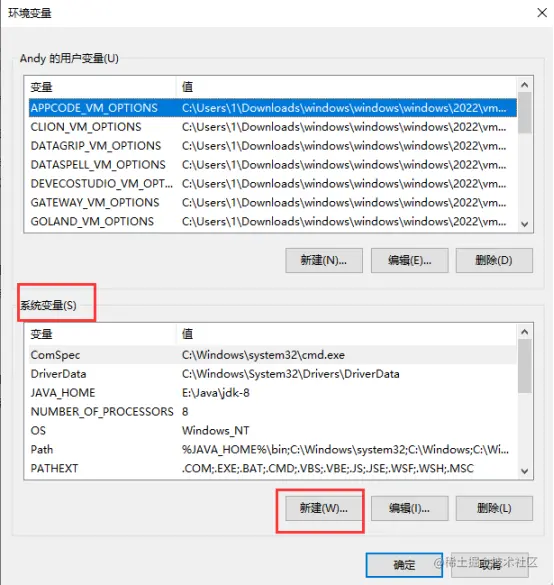 点击确定后变量JAVA_HOME就新建好了,然后我们再找到Path这个变量,双击打开。