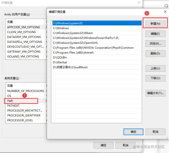 打开后点击右边的新建,新建一个环境变量,因为我们刚才设置好了JAVA_HOME,所以这边我们输入%JAVA_HOME%\bin按下回车键就新建好了,然后点击右边的上移将这个变量移动到最上方,最后全部点击确定就设置好了我们的系统环境变量。以后调用java指令的时候系统就会在系统变量里找到这个Path路径,就可以成功调用了。