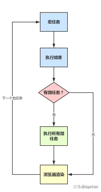 - 宏任务(macro-task):一般是 JS 引擎和宿主环境发生通信产生的回调任务,比如 setTimeout,setInterval 是浏览器进行计时的,其中回调函数的执行时间需要浏览器通知到 JS 引擎,网络模块, I/O 处理的通信回调也是。包含有 setTimeout,setInterval,DOM 事件回调,ajax 请求结束后的回调,整体 script 代码,setImmediate。