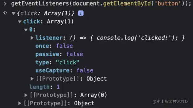getEventListeners(button) // {}