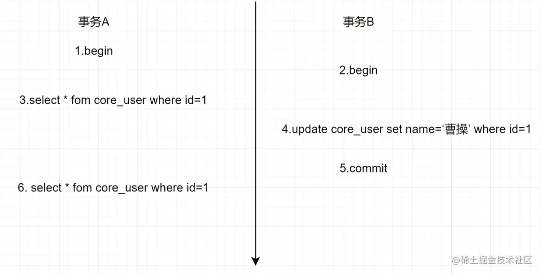 为了加深大家对MVCC的理解,我们来分析一个例子吧:比如RC隔离级别,存在不可重复读问题,我们来分析这个过程哈。