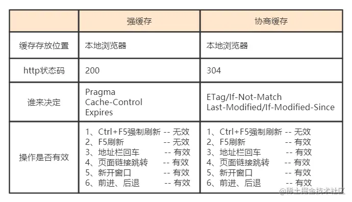 根据是否需要重新向服务器发起请求来分类,可分为(强制缓存,协商缓存) 根据是否可以被单个或者多个用户使用来分类,可分为(私有缓存,共享缓存) 强制缓存如果生效,不需要再和服务器发生交互,而协商缓存不管是否生效,都需要与服务端发生交互。下面是强制缓存和协商缓存的一些对比: