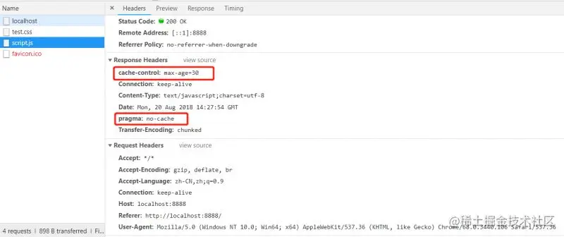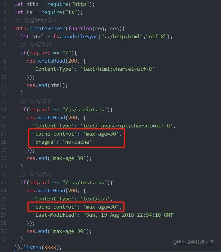 这个Pragma和Cache-Control共存时的优先级问题还有点异议,我在不同的文章里发现:有的说Pragma的优先级更高,有的说Cache-Control高。为了搞清楚这个问题,我决定动手操作一波,首先我用nodejs搭建后台服务器,目的是设置缓存参数,具体代码如下: