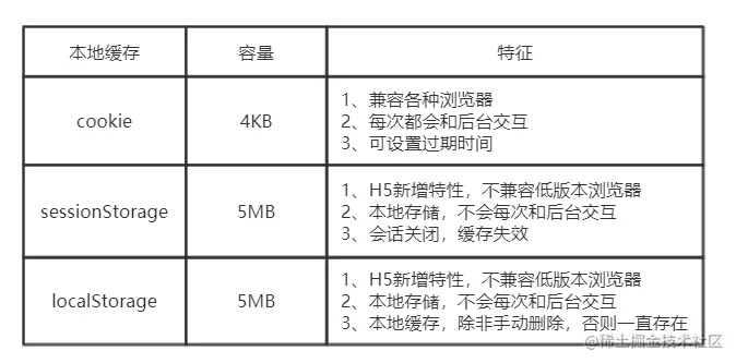 下面说说最常用到的浏览器缓存有:cookie、sessionStorage、localStorage这三者的主要特征如下:
