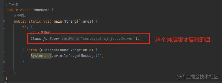 【6】粘贴到Class.forName()的参数里面,用来加载对应的驱动。