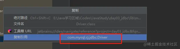 【5】复制引用路径,该地址用于加载连接器驱动使用,类似C#里面的加载dll文件的用法。