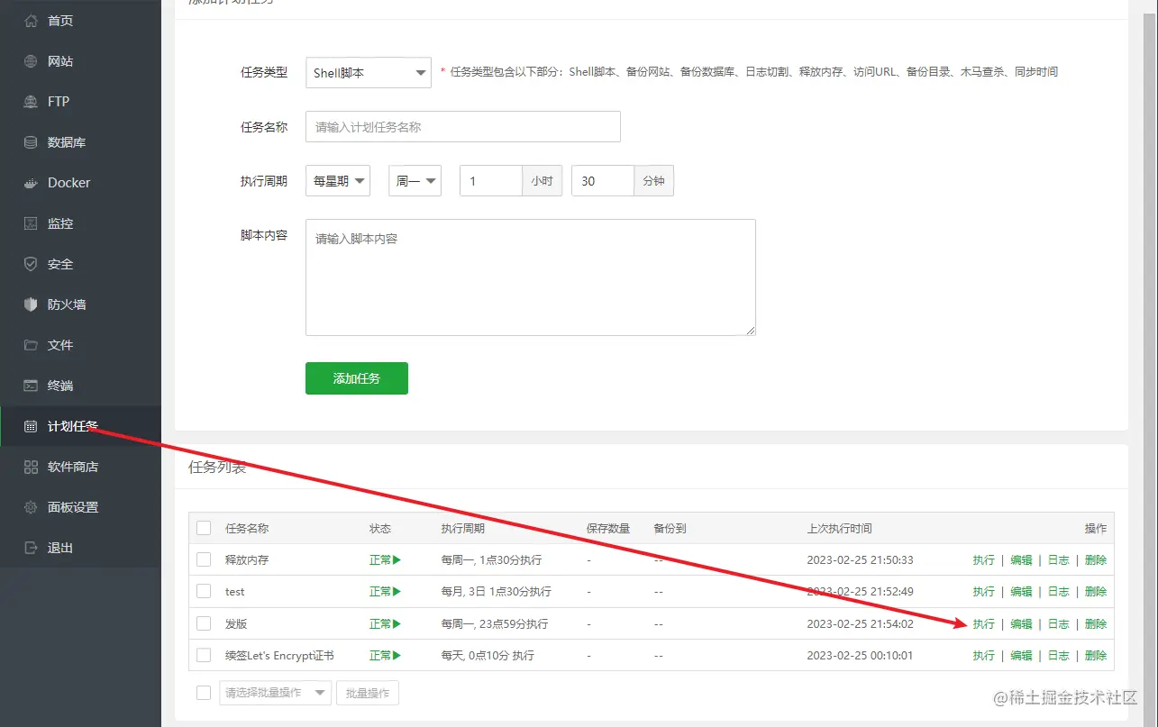 宝塔里面有个计划任务,可以定期或手动来执行脚本。我们作为开发,只需要将代码推送到github上。然后让在宝塔面板中点击构建即可。