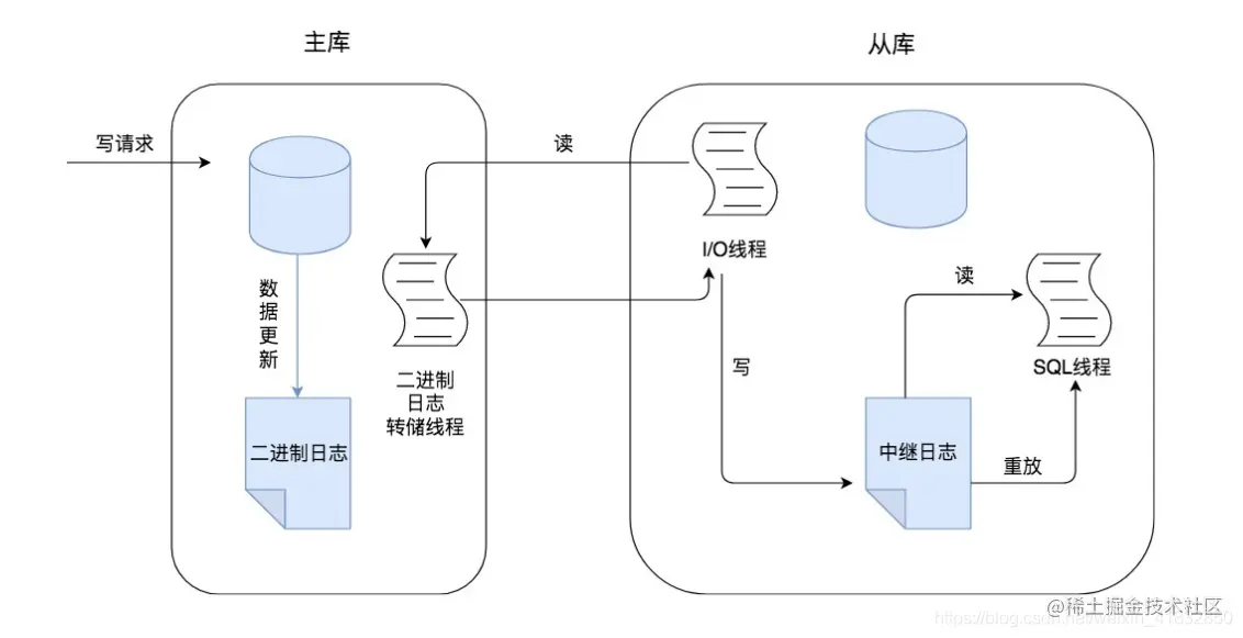 - 当master节点接收到一个写请求时,这个写请求可能是增删改操作,此时会把写请求的更新操作都记录到binlog日志中。