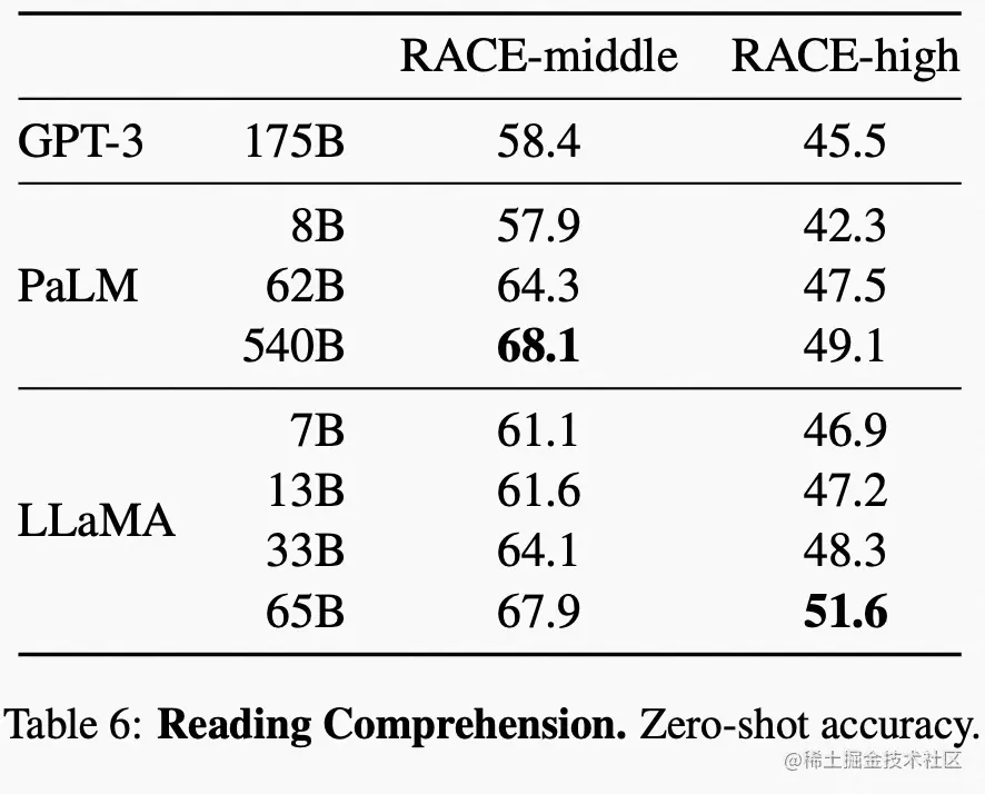 在一些推理任务上,LLaMA 有如下表现: