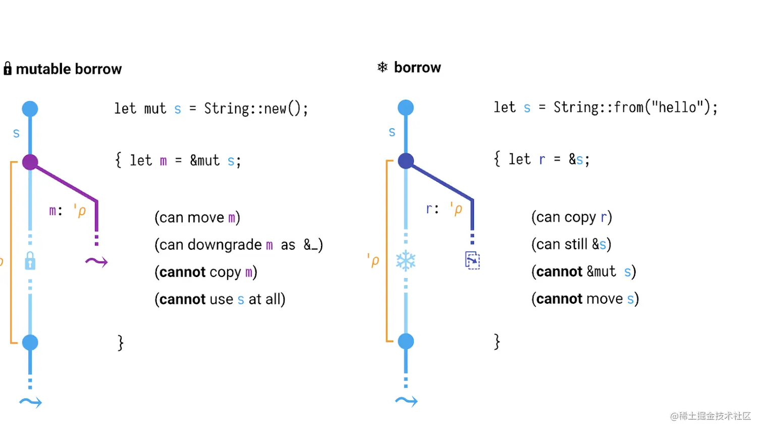 - 在任何时候,你可以有一个可变的引用或任何数量的不可变的引用。