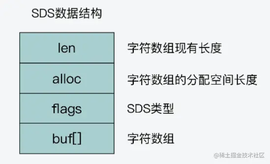 简单动态字符串(Simple Dynamic String,SDS),它的结构如下: