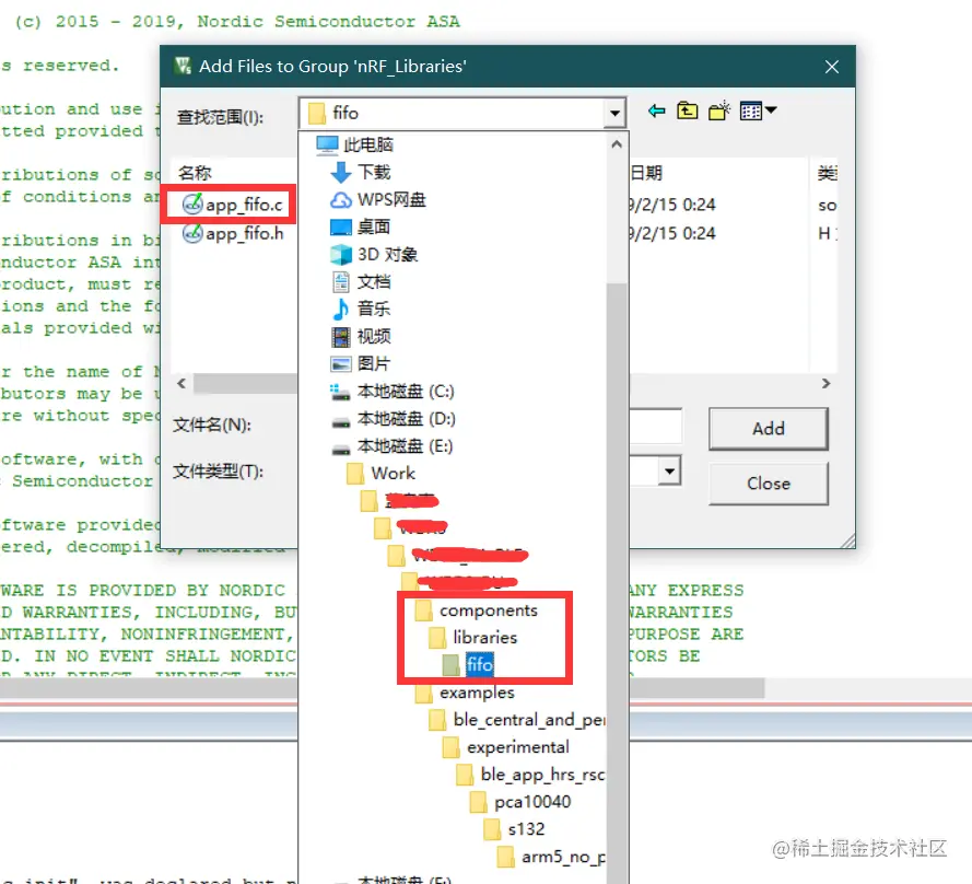 在 nRF_Drivers 文件夹和 nRF_Libraries 文件夹确认以下组件库是否存在,不存在则添加。