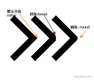 lineJoin 设置或返回两条线相交时,所创建的拐角类型