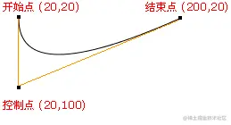 3 //绘制2次方曲线,贝赛尔曲线