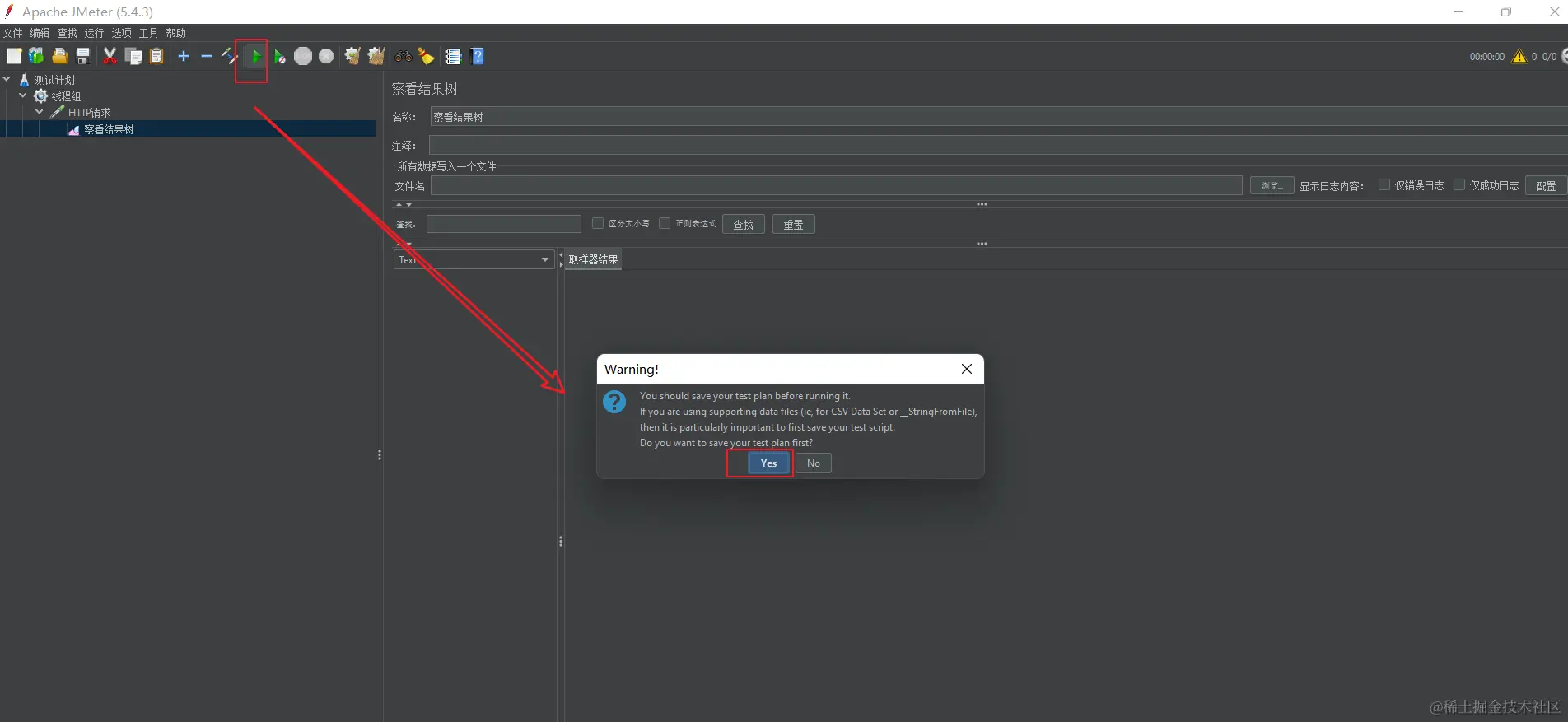 点击启动按钮并且点击yes并且保存启动jmeter高并发发送请求