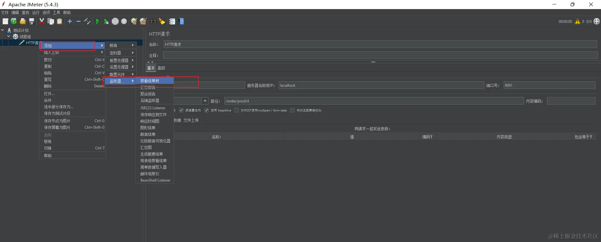 5 为了方便查看并发发送结果,添加一个监听器 察看结果树