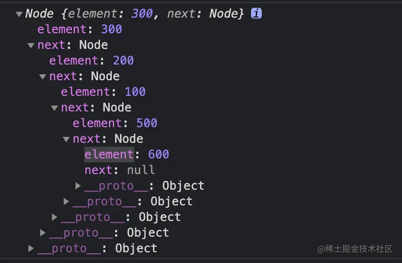 ll.add(1,500) // Node {element: 200,next: Node { element: 100, next: Node { element: 500, next: null } } }