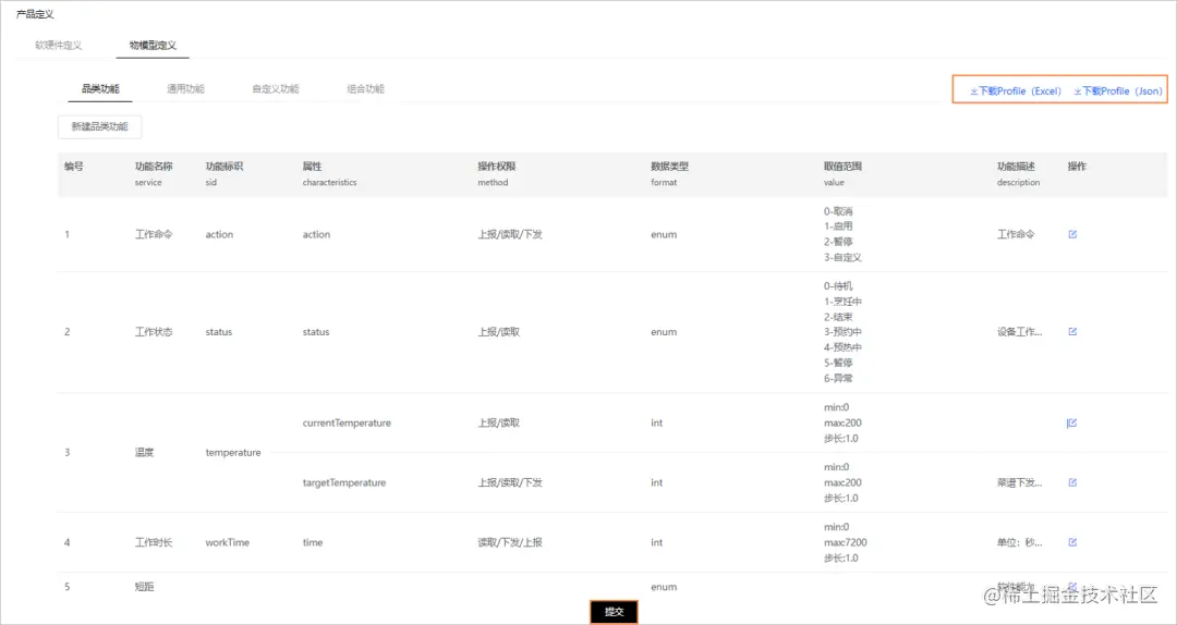 1)仅当物模型定义完成提交后,才支持下载Profile文件。