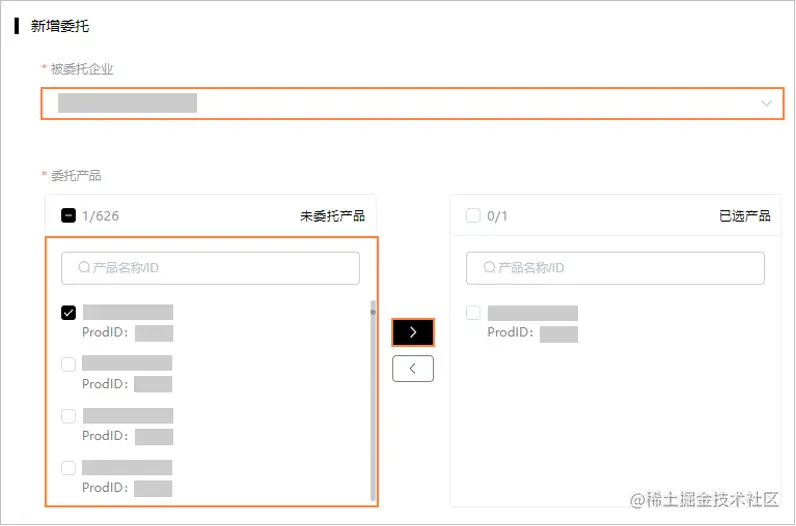 步骤3:选择“被委托企业”和“委托产品”,如下图所示。