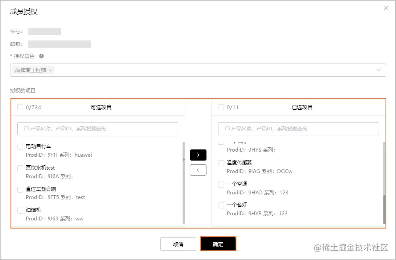 步骤5:在弹出的窗口中,选择需要授权的产品,并单击“确定”。
