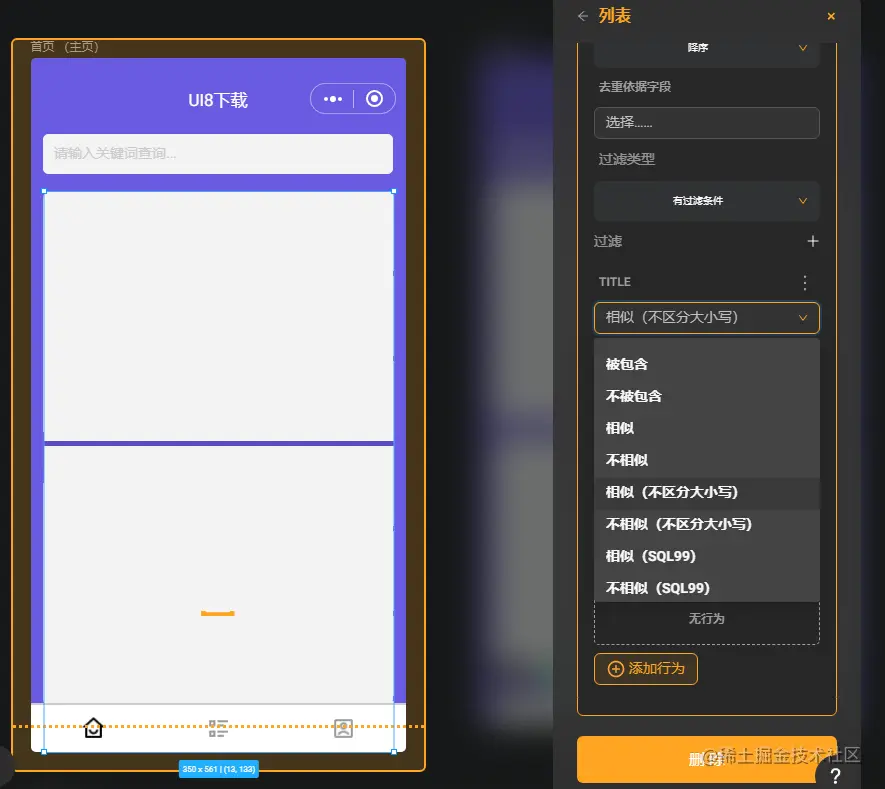 点击过滤右侧的“+”按钮,添加Title,同时将字段的匹配规则设置为“相似(不区分大小写)”,这一步操作的意义在于,当用户在搜索框输入“ABC”和“abc”时,搜索的结果是相同的。