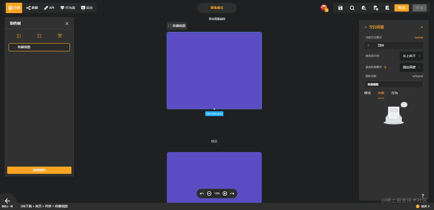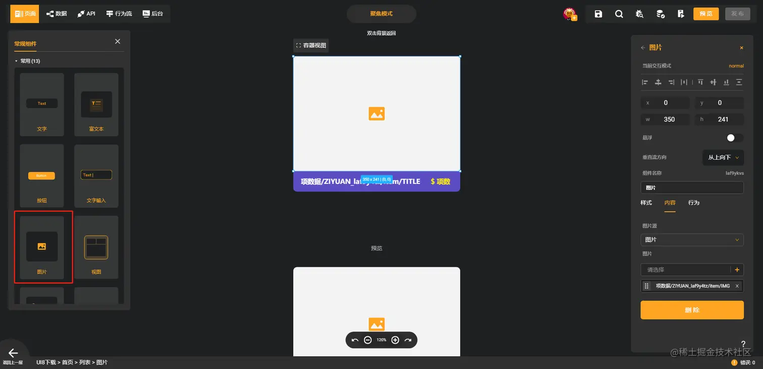 这里以图片为例,进行展示。将图片组件拖拽至页面“容器视图”区域。
