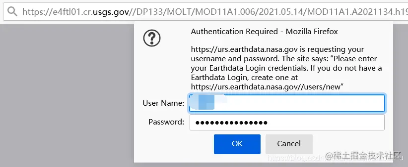 在弹出的界面中输入自己的Earthdata帐号与密码。