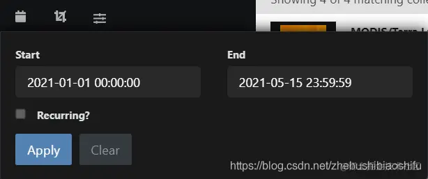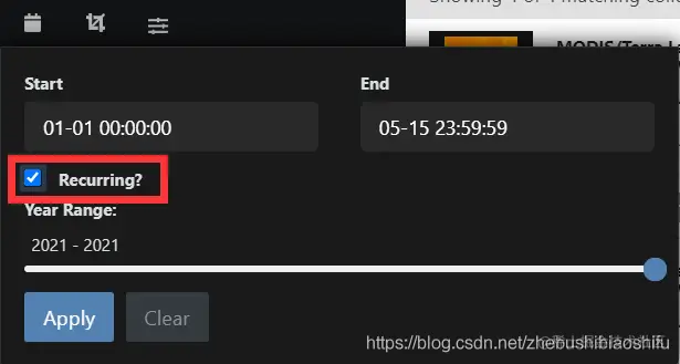 随后,在左侧搜索栏下方第一个按钮处选择我们需要的遥感影像时间范围。