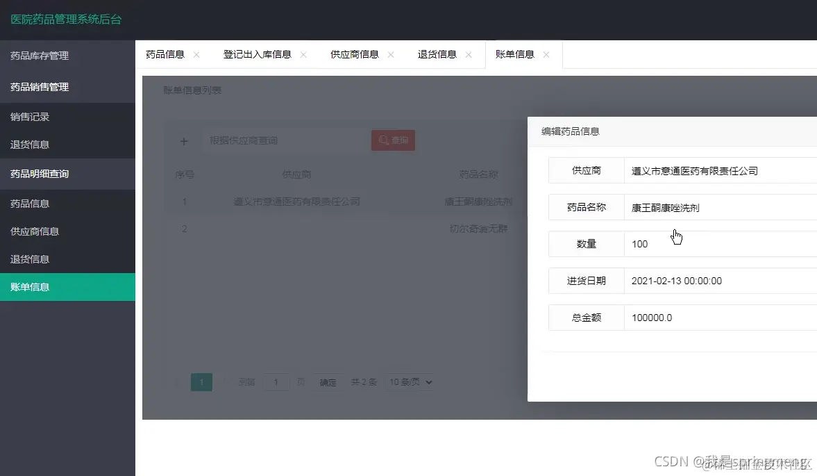 INSERT INTO `billinfo` VALUES (1, '哈药六厂', '感冒灵', 1000, 22500.00, '2021-02-02 16:00:00');