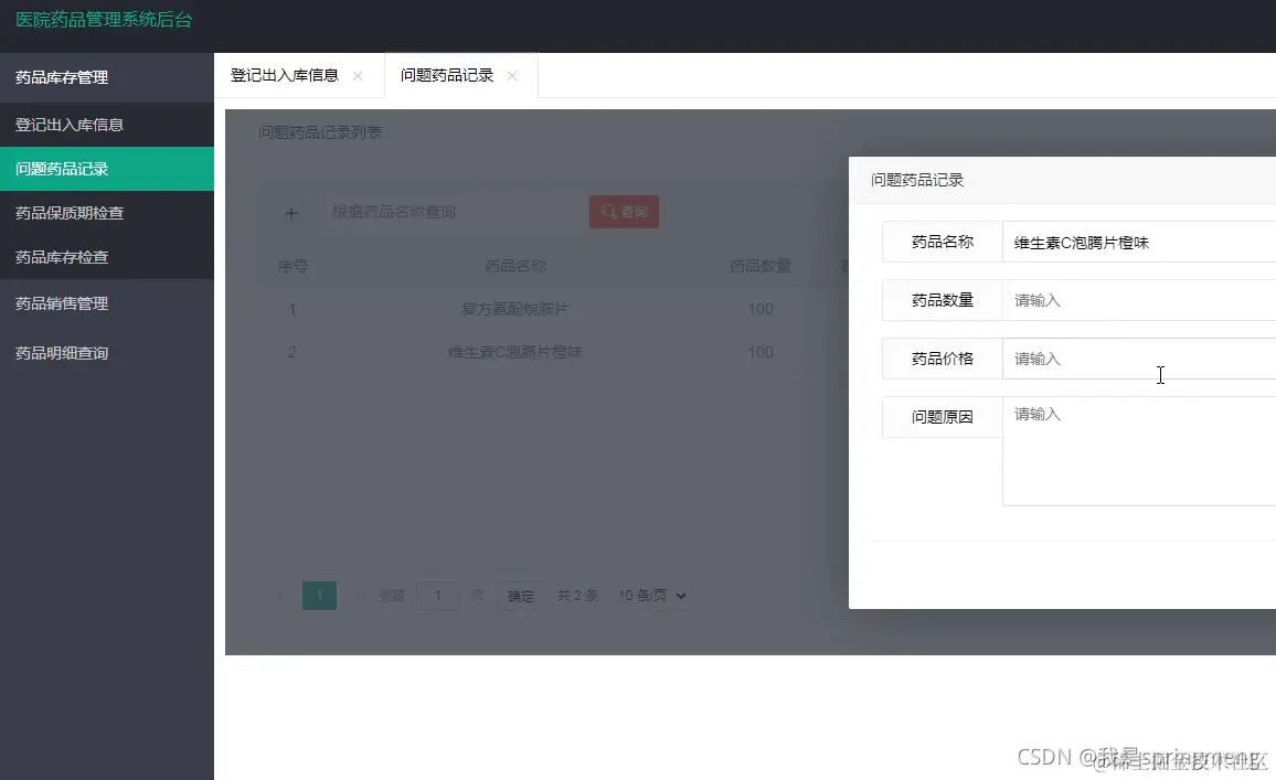 INSERT INTO `problem` VALUES (1, '感冒灵', 2, 22.50, '受潮了。不能欺骗消费者。', '2021-02-24 14:19:36');