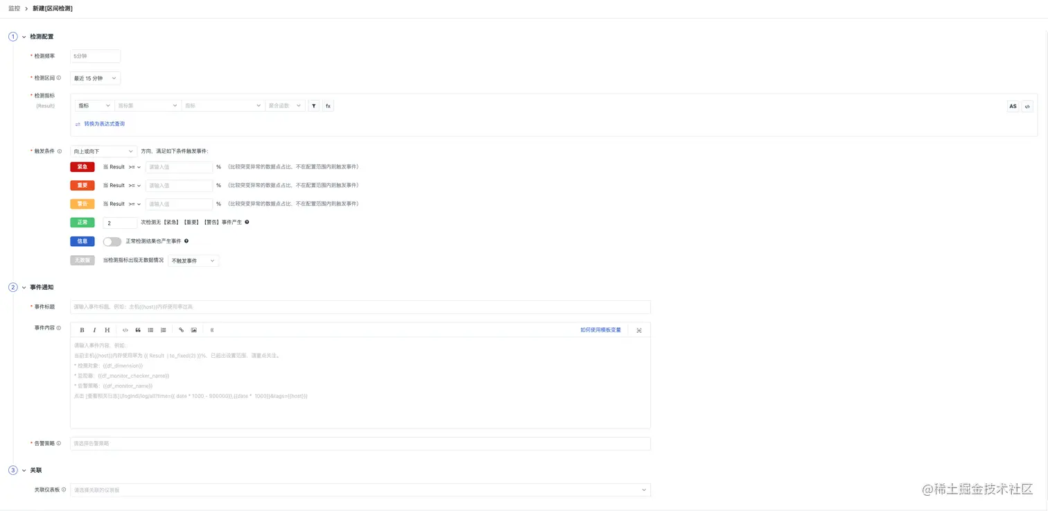 - 关联仪表板:需要关联的仪表板或是异常事件可能影响到的仪表板