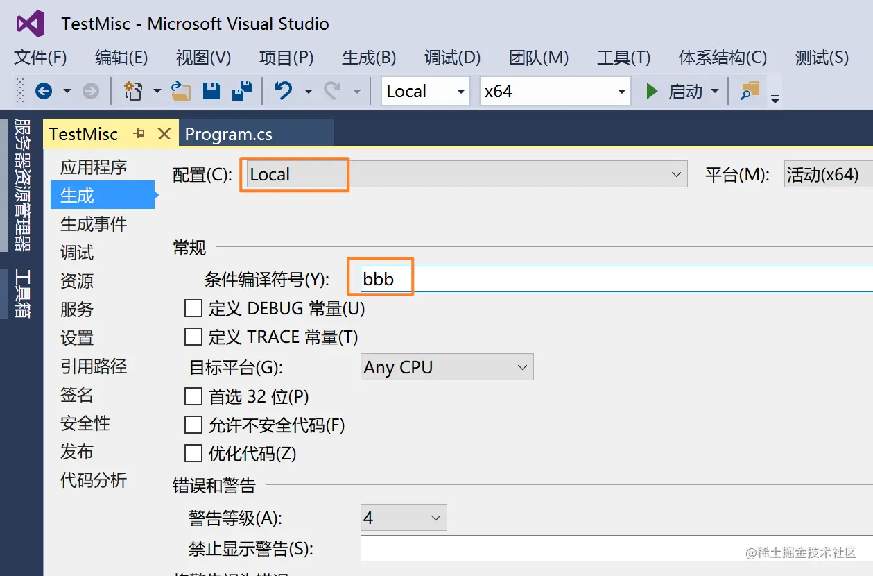 VS 条件编译符号