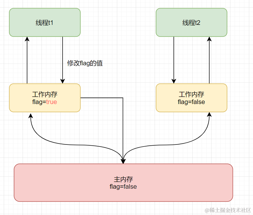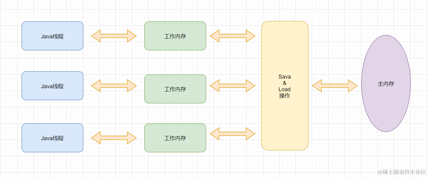 - 线程的工作内存保存了被该线程使用的变量的主内存副本,线程对变量的所有操作都必须在工作内存中进行,而不能直接操作操作主内存。并且每个线程不能访问其他线程的工作内存。