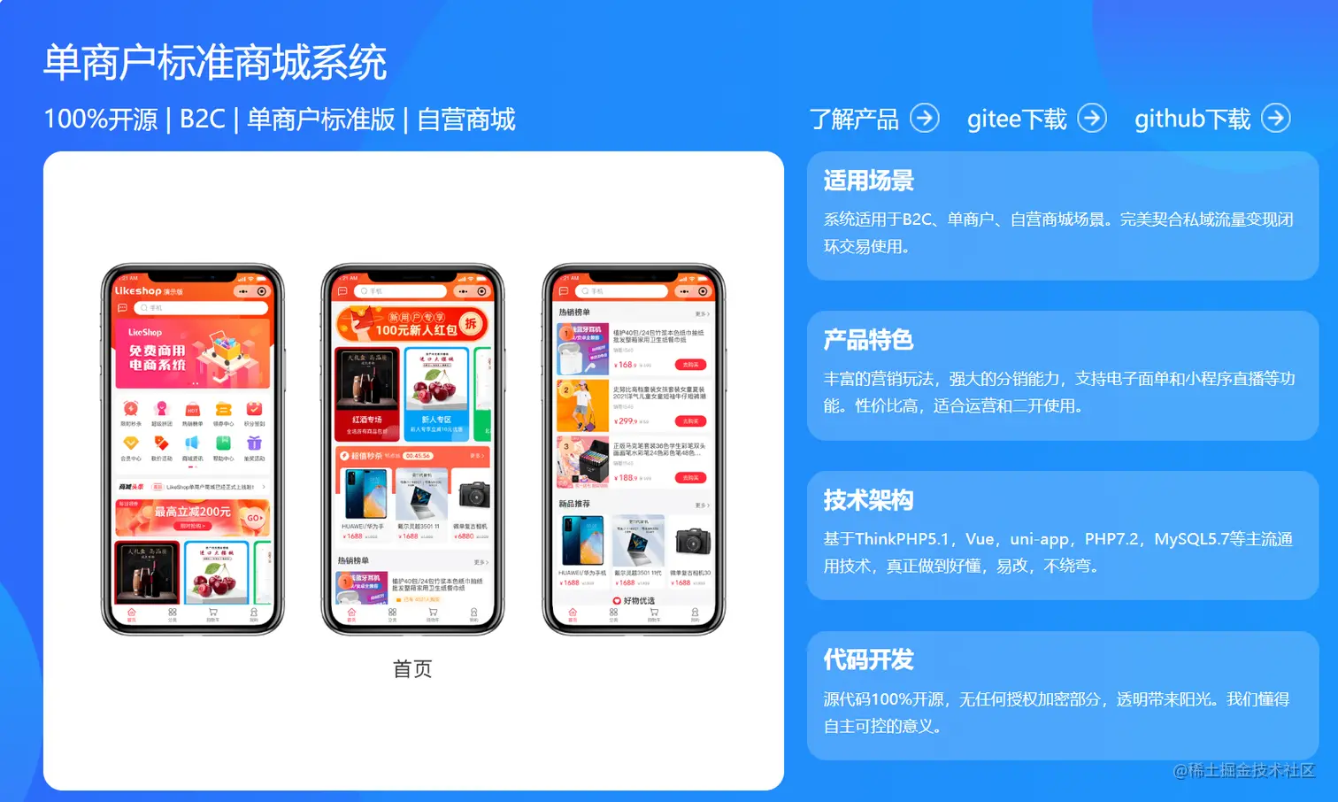 likeshop是一支有核心技术的研发团队,一直以来坚持以开源为驱动、以售后服务为保障、打造超高的性价比产品为目标。使用过likeshop产品的用户都知道,likeshop的产品无论是运营还是二开都是性价比极高,代码100%开源无任何加密的商城系统。