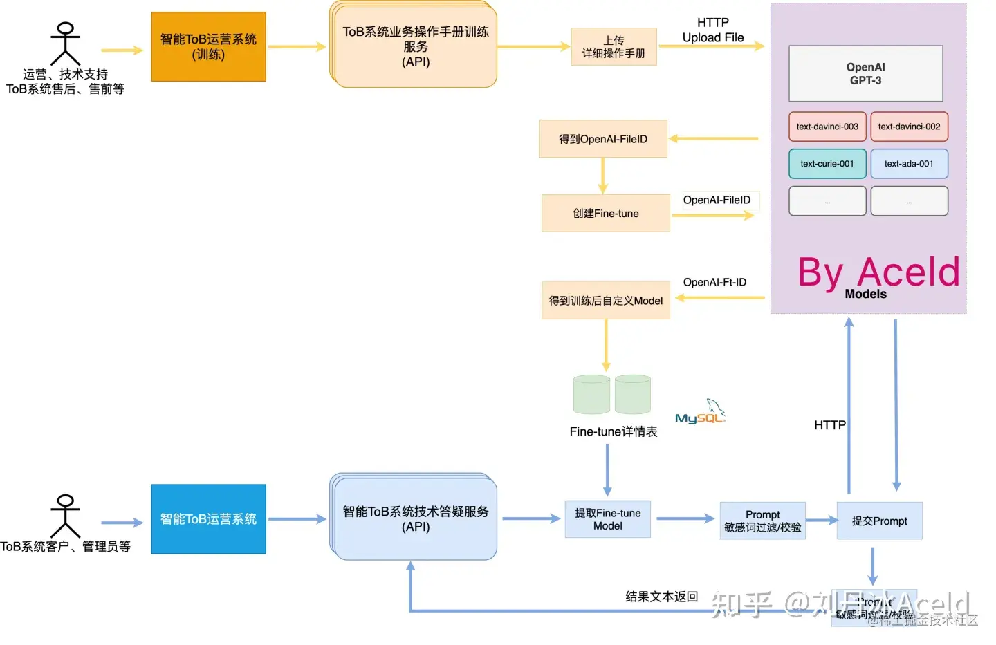 整体思路为,应用OpenAI提供的Files大文件训练和Fine-tune自定义业务Model能力。尝试基于已有的成熟Model再叠加业务内容,进行简单的知识补充即可。