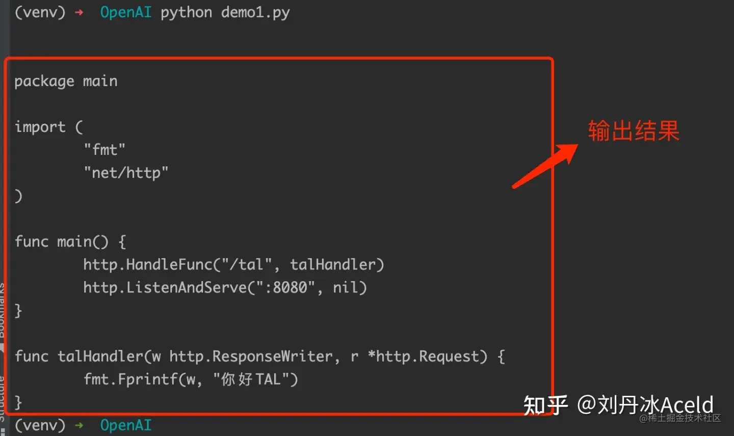 prompt = "用Golang写一个API-Server,且有一个路由/tal,给客户端返回'你好TAL'的能力"
