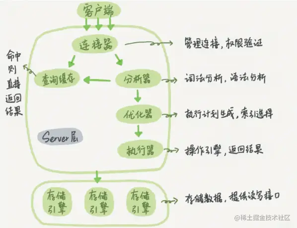 Mysql逻辑架构图主要分三层: