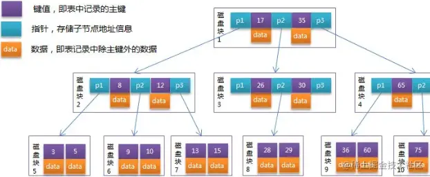 B-TREE算法中,每个节点不仅包含数据的key值,还有data值,存储数据量很大时会导致树的深度较大,查询效率较低。