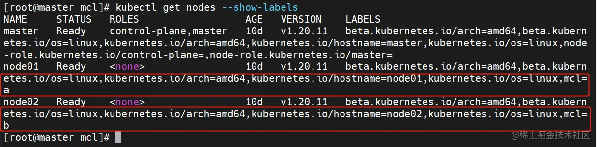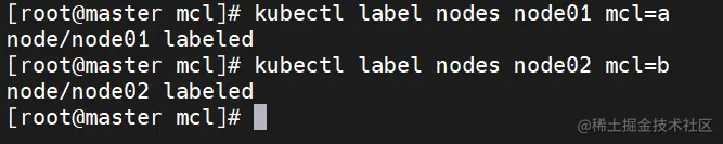2.3 给对应的 node 设置标签分别为 mcl=a 和 mcl=b