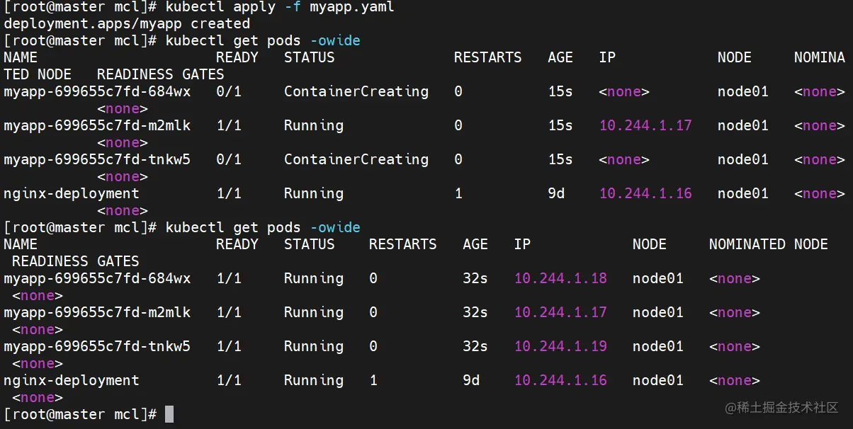 myapp01 0/1 Pending 0 17s <none> <none> <none> <none>