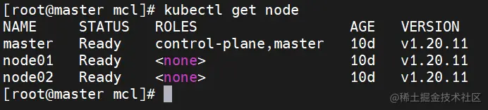 node02 Ready <none> 11d v1.20.11